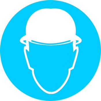 Знак "Работать в защитной каске" следует применять на рабочих местах и участках предприятия, где требуется защита головы.